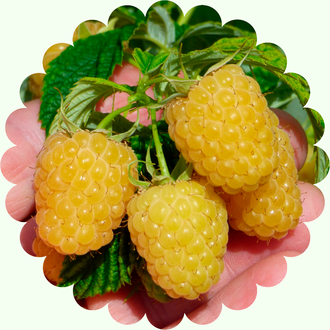 Ягоды светло-желтого цвета, очень крупные, весом до 6 граммов, отличаются плотностью и превосходным сладким вкусом с ярко выраженным ароматом малины.