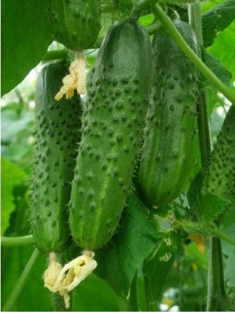 Огурчики цилиндрические, длиной 9-11 см, диаметром 3-3,5 см, насыщенного зелёного цвета, среднебугорчатые, генетически без горечи.