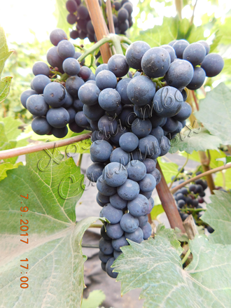 Среднего срока созревания. Грозди от мелкого до среднего размера, ягоды некрупные, округлые, темно-синие.
