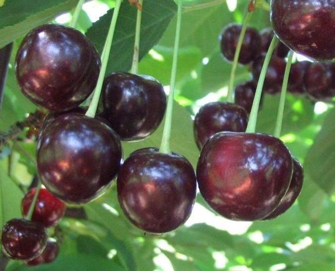 Кожица черно-красная, покрыта многочисленными серыми точками, мякоть темно-красная, плотная, волокнистая, сочная, очень хорошего кисловато-сладкого, гармоничного вкуса; сок густой, темно-вишневый. Зимостойкость дерева хорошая. Сорт самобесплодный.